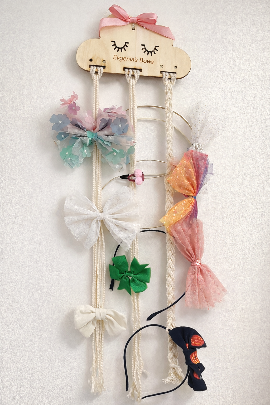 This minimal and classy personalised hand painted headbands and bow hoder is a fun, beautyful and ractical way to dislay and organize your sweet girl’s headbands, head wraps and jewellery makes the perfect gift for a baby shower or birthday. It will add a custum touch and an eye catching detail to your little girls nursery or bedroom.